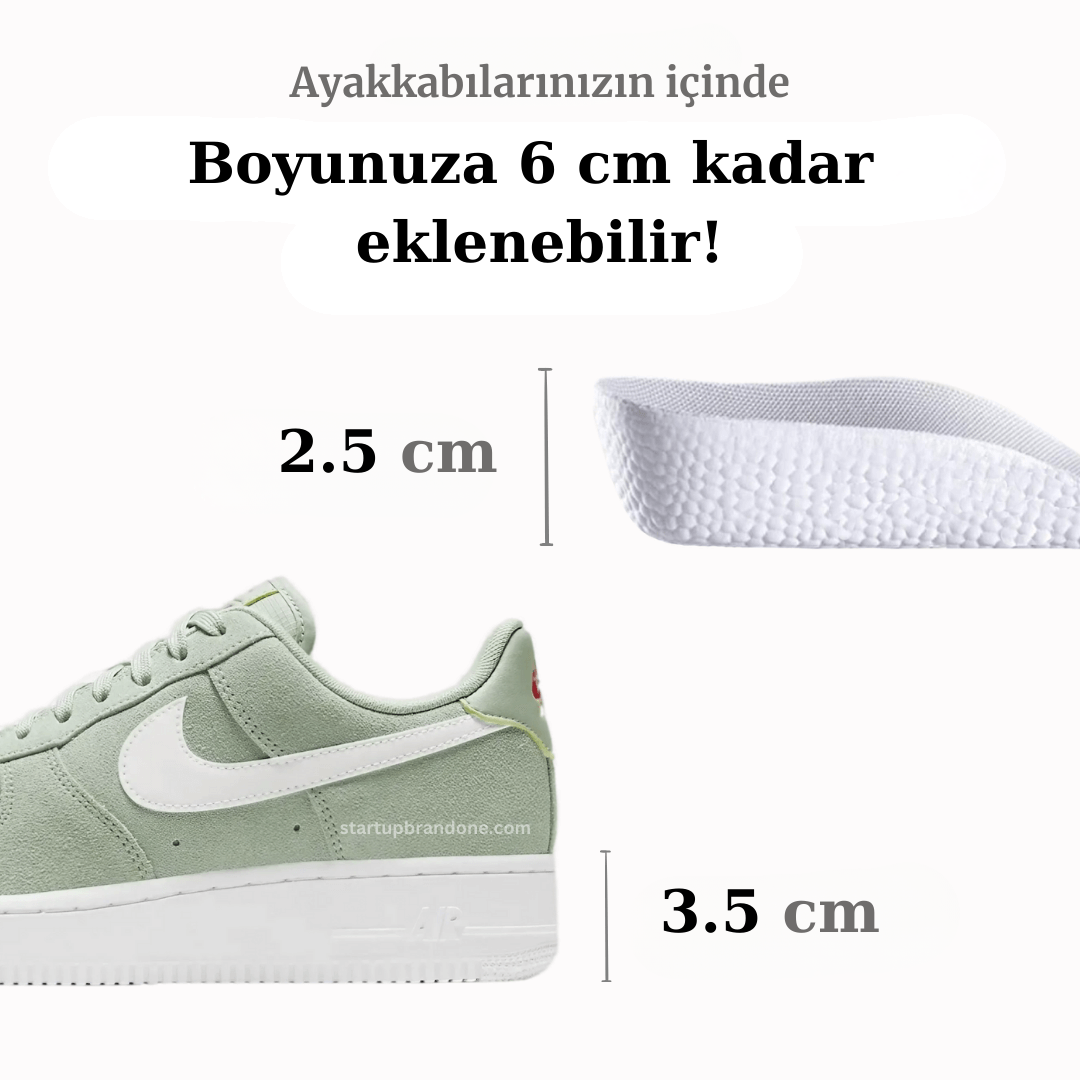 Ortopedik boy uzatıcı tabanlık, özel yastıklama teknolojisi ile gün boyu maksimum konfor sunarken, doğal duran gizli boy artışı sayesinde duruşunuza ekstra özgüven katar.